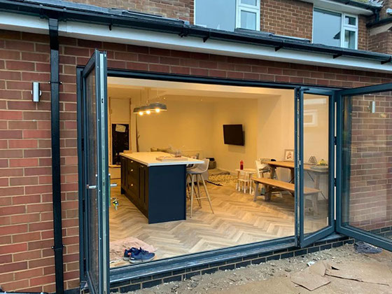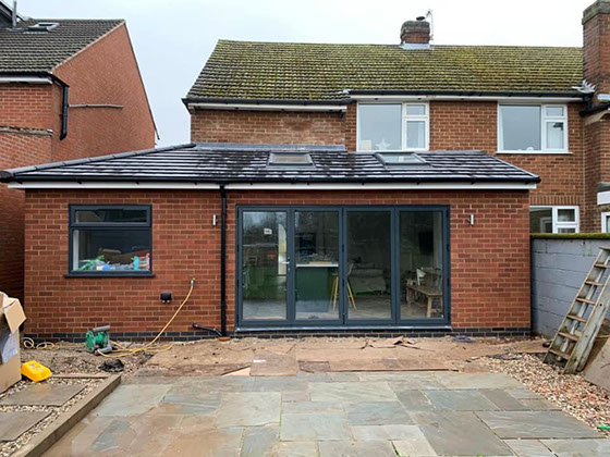 This extension was built for our client in Derby. They wanted a wrap around extension that not only gave them a fantastic family kitchen area but also gave them a TV room for the kids with a downstairs toilet and utility attached to the house.